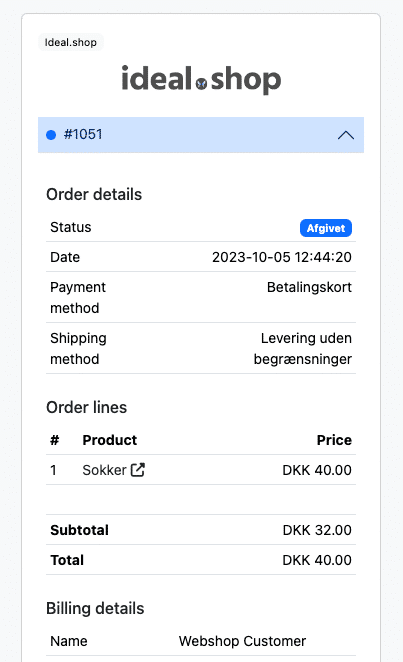 The customers’ orders are automatically imported from your Ideal.shop webshop, based on the customers’ e-mail.